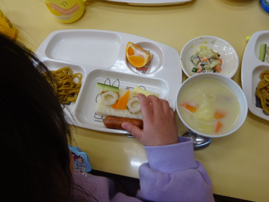 2/3の献立2026年2月3日 今日の献立は、鬼顔パン、クリームシチュー、さつま芋のサラダ、ミカンでした。 このような感じで子どもたちに配膳しました⇒ 色々な食べ物のパーツを並べて鬼顔パン👹の出来上がり! 〈 お知らせ一覧へ戻る 》 TOP